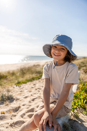 The hat features an elasticated toggle around the head for the perfect fit, plus a chin cord and toggle to keep it secure. For extra peace of mind, the chin cord comes with a safety release snap—ideal for running, jumping, and playing.
