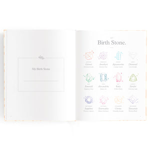 Introducing our NEW 2nd Edition - now with gold gilded edges and added pages including Star Signs, Birth Flowers, Birth Stones, Baby Teeth Chart!
