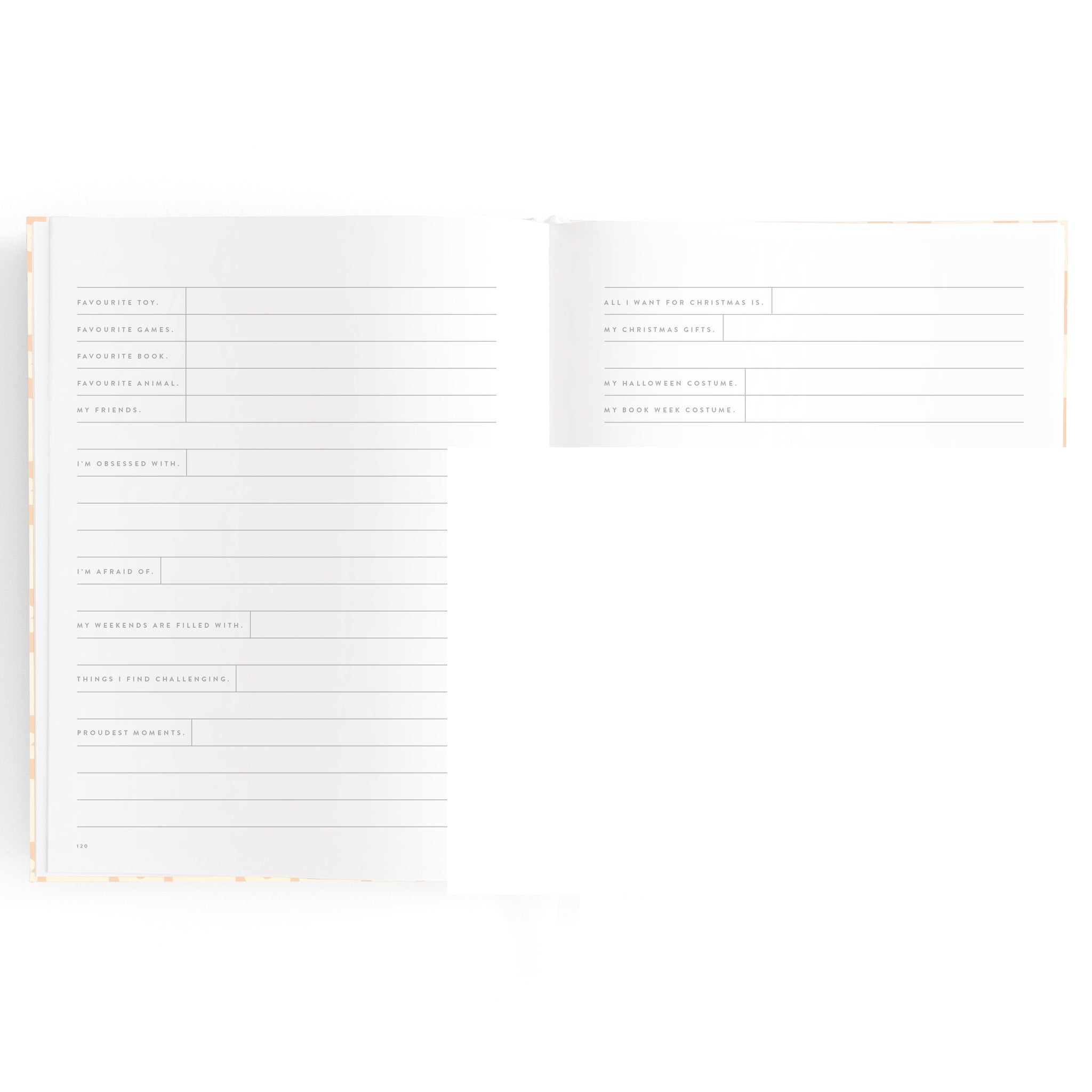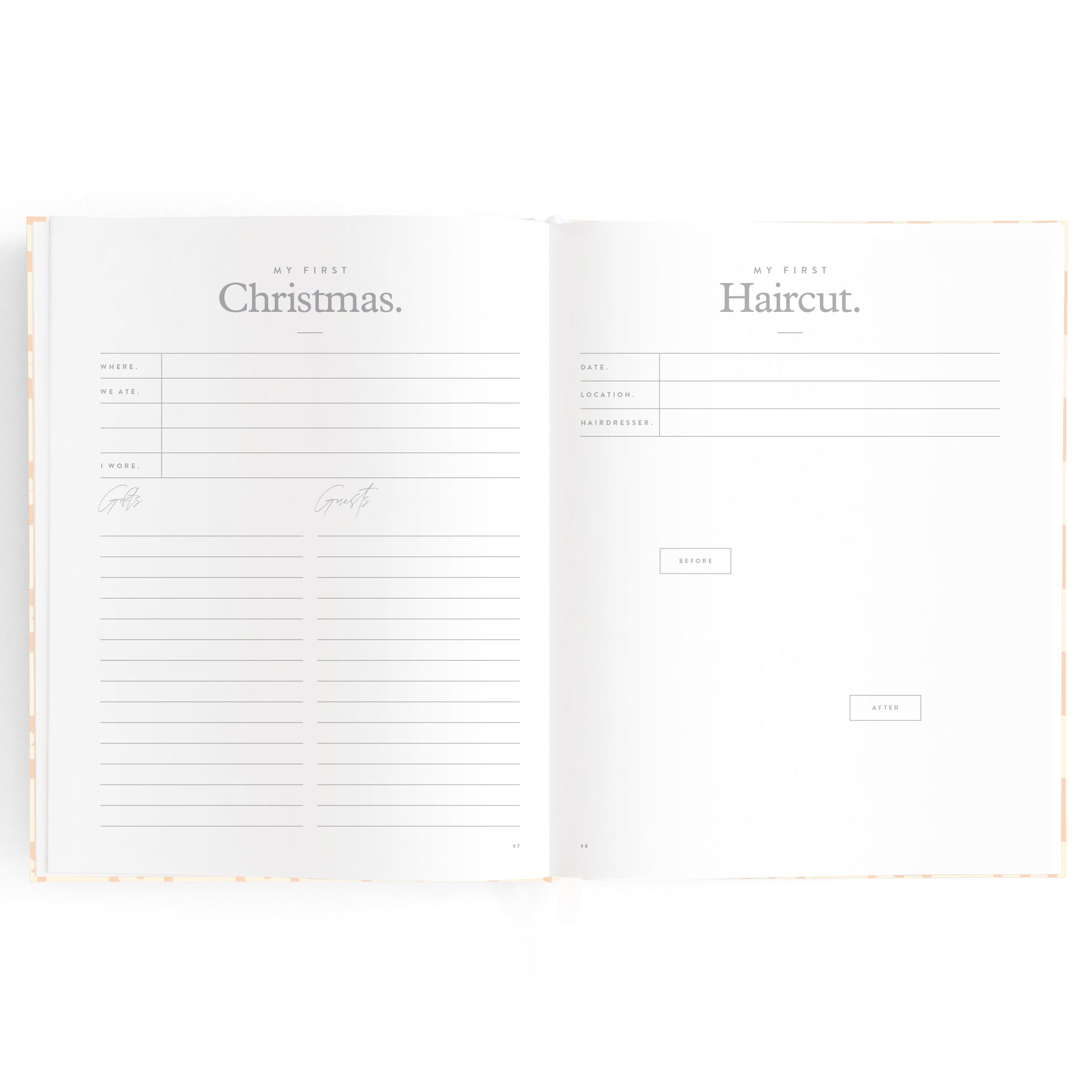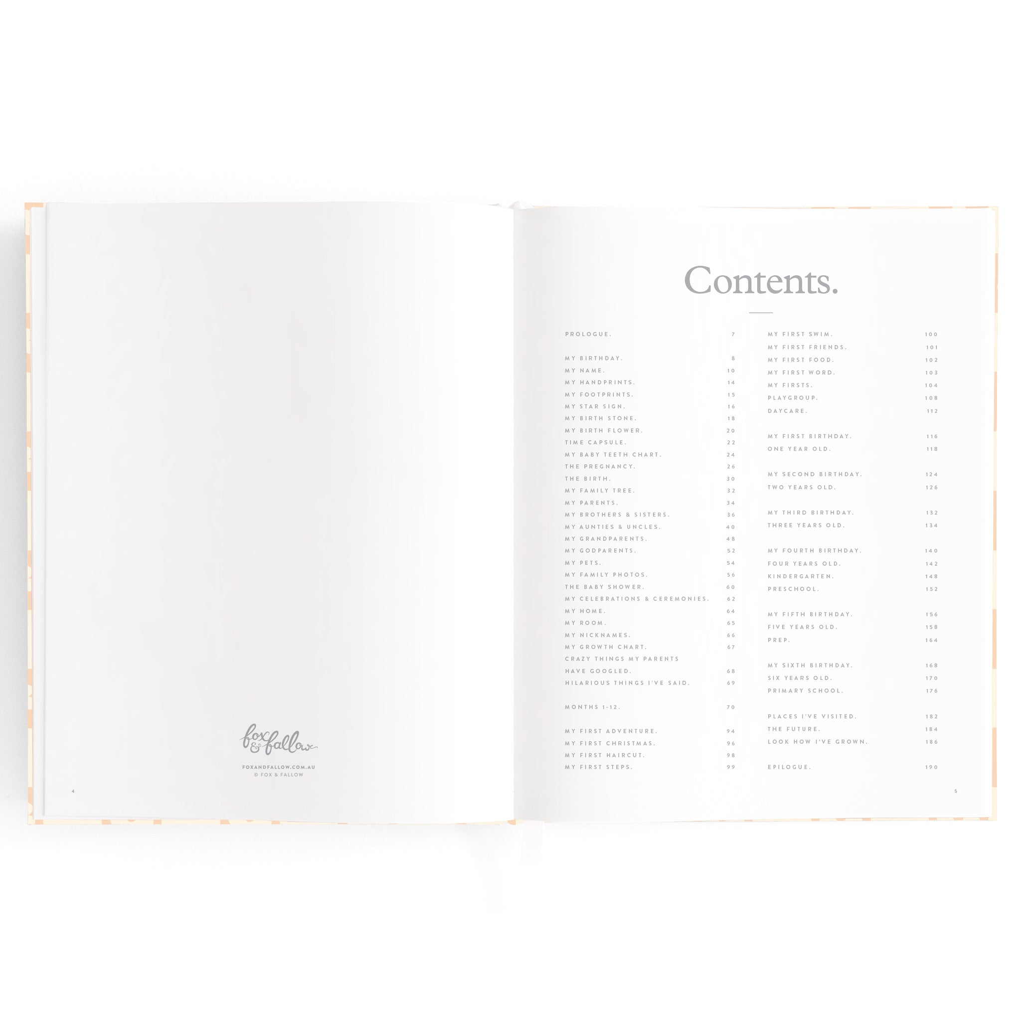 A beautiful keepsake for the whole family to enjoy. Includes: important milestones and firsts, family profiles, family tree and travel map, playgroup and daycare through to kindy and school years, time capsule, nicknames and celebrations, pets, friends, birthdays and more. 190 pages.