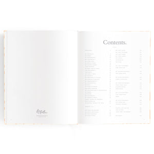 220 x 280 mm (15mm spine) / 8.6 x 11 inches (0.59 inch spine). Gold foil stamped printed linen cover. White grosgrain ribbon. 2mm foil stamped hard cover, lay-flat binding. Gold foil end pages and premium 115gsm FCS-certified acid-free paper. Packaged in a cello sleeve with gold foil bellyband. Designed in Australia, printed in China.
