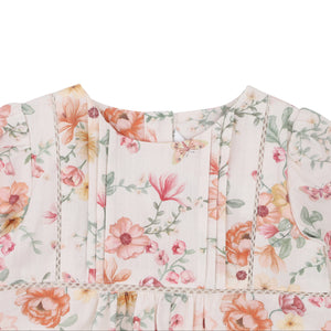 Soft, floaty and made for everyday moments, this sweet bodysuit overlay dress brings together comfort and charm in one easy piece. Featuring our signature floral print, it feels like a little storybook garden brought to life. With a woven cotton dress layered over a stretchy bodysuit base, it’s designed for easy dressing while still feeling special enough for outings, celebrations and photos along the way.