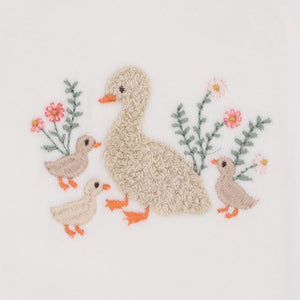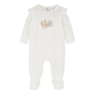 Soft, calm and full of charm, this velour zip suit is made for the quiet moments that matter most. Featuring a sweet embroidered duck and ducklings surrounded by delicate florals, it feels nostalgic and gentle, perfect for cosy days, cuddles, and early adventures at home. Designed with comfort in mind, the plush velour fabrication and practical zip opening make dressing easy while keeping little ones snug all day long.