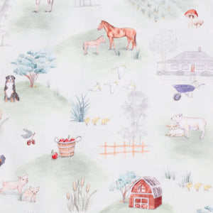 Inspired by life on the farm, this soft zip suit features a gently illustrated farmyard scene in calm, soothing tones. Crafted from organic cotton jersey with a touch of stretch, it’s designed for all-day comfort and easy wear, with thoughtful details that make dressing simple and fuss-free.