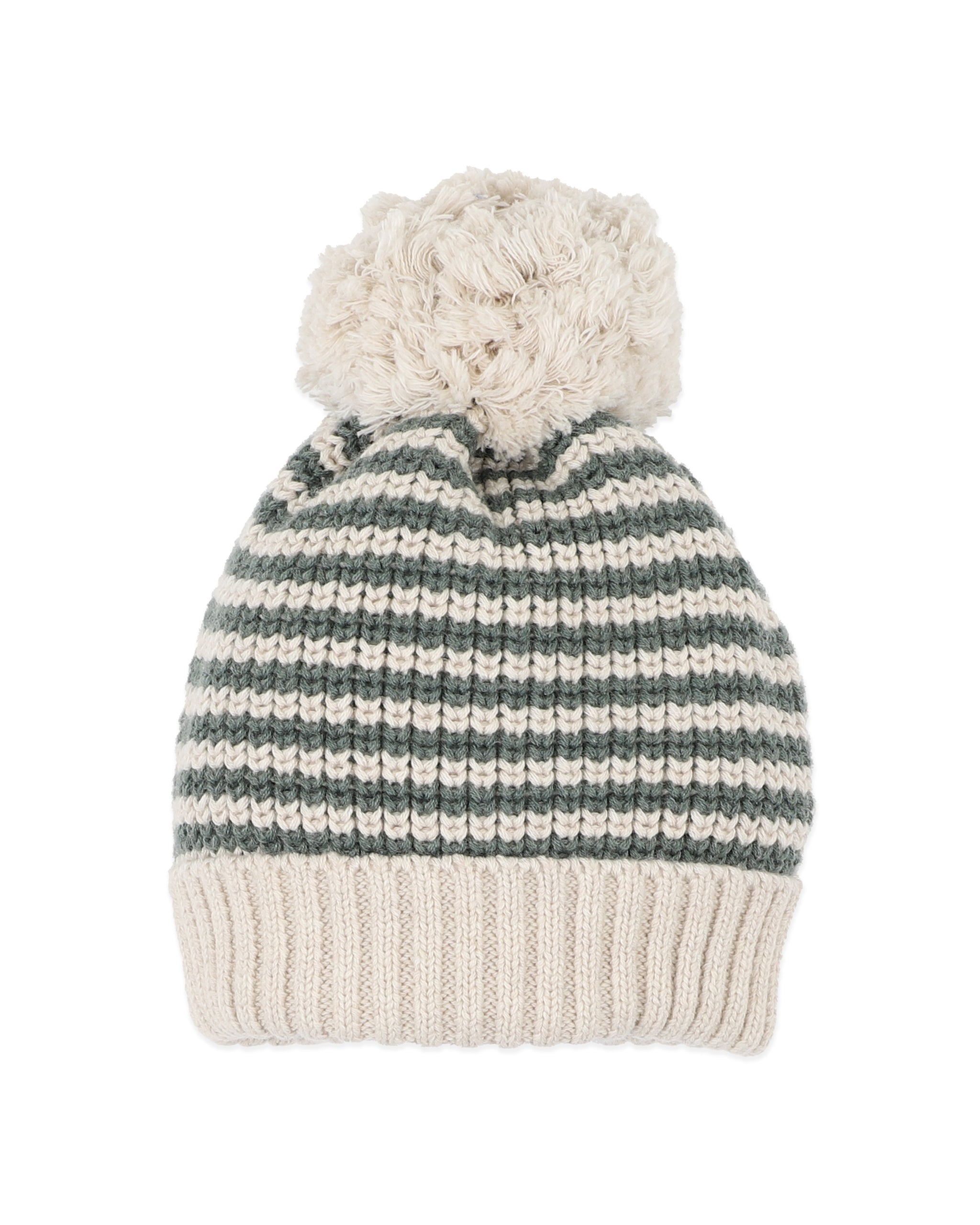 A sweet winter essential designed to keep little heads warm and cosy. This soft knit beanie features classic stripes and a fluffy pom pom for a playful finish, making it the perfect companion for cool-weather outings. Designed to pair back effortlessly with the matching cardigan and leggings, it’s a timeless piece for everyday layering.