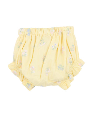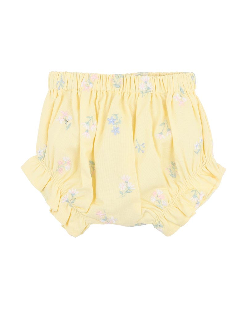 Add a little sunshine to your baby's outfit with these sweet bloomers in soft yellow, crafted from a lightweight cotton linen blend and adorned with delicate all-over floral embroidery. Designed for comfort and easy dressing, they feature an elasticated waistband and leg openings that create a softly gathered silhouette. Perfect layered with the matching Bonnie embroidered bodysuit or sunhat for a coordinated summer look.