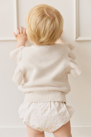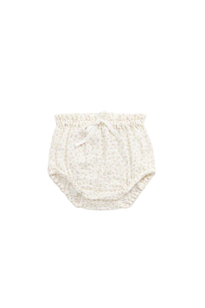 The Cleo Bloomer – Aries Mauve is a sweet and delicate piece, featuring a soft floral print on a creamy white base. Designed with an elastic waistband and leg openings for comfort, and finished with a tiny bow at the front, this bloomer is perfect for layering under dresses or pairing with a simple top.