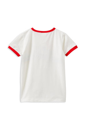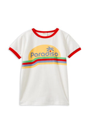 Milky Clothing Paradiso Tee is a summer must-have for your stylish little one. Featuring a cool retro front print, this tee is designed with an off-white base and red binding around the neck and sleeve openings. Whether paired with casual bottoms for a laid-back playdate or worn on outings, it offers the perfect blend of comfort and style.