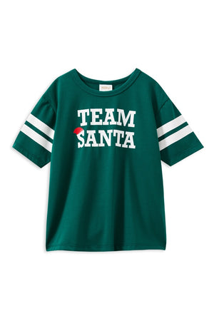 Milky Clothing Team Santa Tee. Get into the festive spirit with this playful Santa Tee, perfect for those moments when a little extra fun is needed! Featuring bold white text "TEAM SANTA" on an Ivy Green base fabric . Offering both comfort and style, this tee is sure to keep your little one feeling festive and fun all holiday season long. It's bound to receive plenty of compliments!