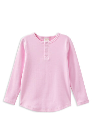 Milky Clothing Marshmallow Henley is a cozy long sleeve top crafted from soft all-pink ribbed fabric for a textured, comfy feel. Designed with a convenient front snap opening, it makes dressing quick and easy for busy little ones. The gentle pink hue keeps it sweet and versatile, perfect for layering or wearing solo on any adventure. Durable and comfy, it’s a staple that blends style and practicality effortlessly.