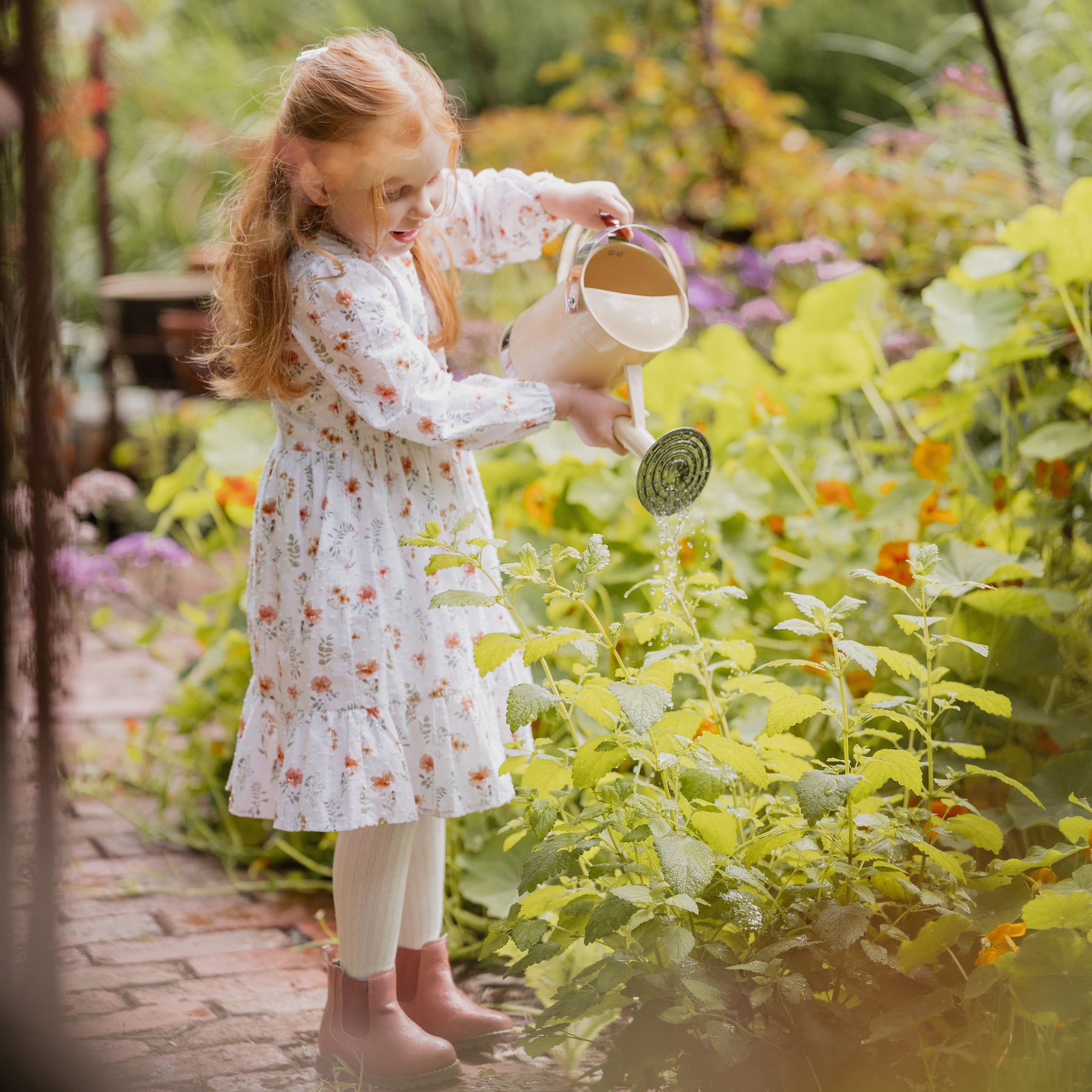 Soft, floaty and full of charm, this cotton dobby dress is made for little moments that feel a bit special. The beautifully textured fabric and gentle shirring through the bodice create an easy, comfortable shape that moves with her, while the fully lined cotton feel keeps things light and breathable. A delicate contrast neck binding adds a refined finish, and the button-back opening makes dressing simple. Designed to be loved across ages, it’s also available in baby and bigger girl sizes, perfect for sweet, matching sibling moments.
