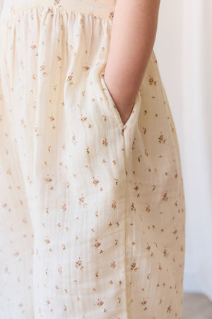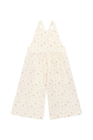 The Organic Cotton Muslin Lana Jumpsuit – Dina Antique is a beautifully lightweight and breathable piece, designed for effortless style and comfort. Featuring a soft floral print on a light base, this jumpsuit has wide legs and crossed shoulder straps — perfect for warm days or layering through the seasons.