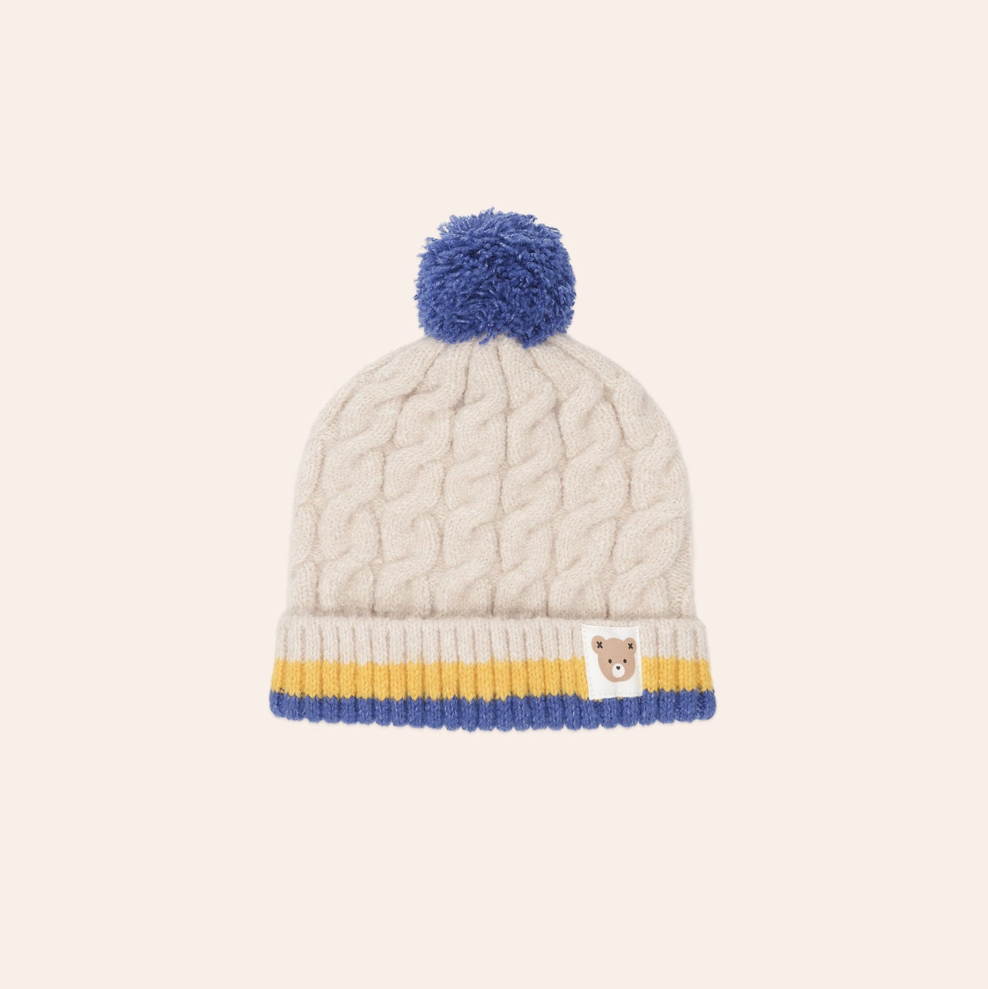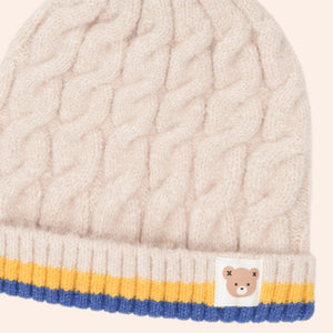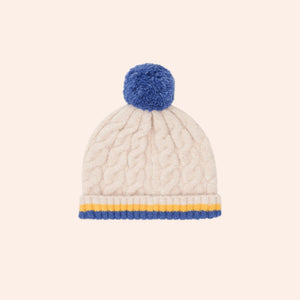 Keep cold ears covered in our Huxbear beanie. Made from the most scrumptiously soft material blend, it’s the perfect way to keep warm and cosy during the cooler months. It features a classic cable knit finish and fluffy pompom.