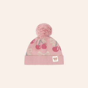 Keep cold ears covered in our Cherry Bow beanie. Made from the most scrumptiously soft material blend, it’s the perfect way to keep warm and cosy during the cooler months. It features a custom cherry bow print and fluffy pompom.
