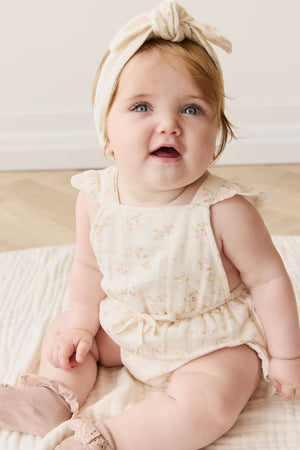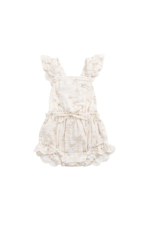 Made from 100% Organic Cotton Muslin, this playsuit is soft, airy, and gentle on delicate skin. Muslin’s natural breathability helps regulate body temperature, making it ideal for year-round wear.