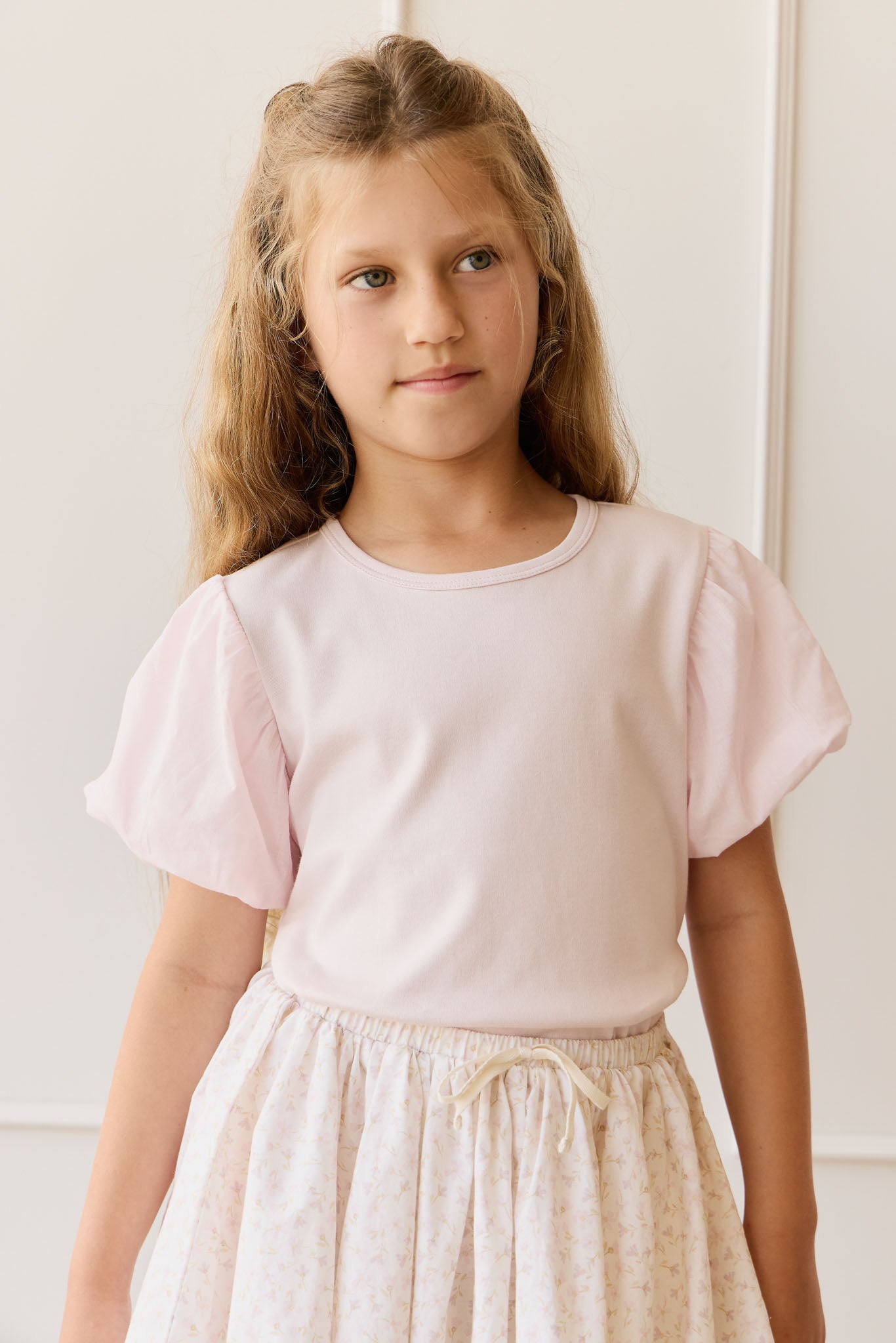 The Myla Top in Soft Misty Rose is a dainty and elegant piece for your little one’s wardrobe. Featuring puffed short sleeves and a soft round neckline, this top offers a timeless silhouette in a gentle rose hue. Perfect for layering or wearing on its own, it’s a versatile essential with a touch of charm.