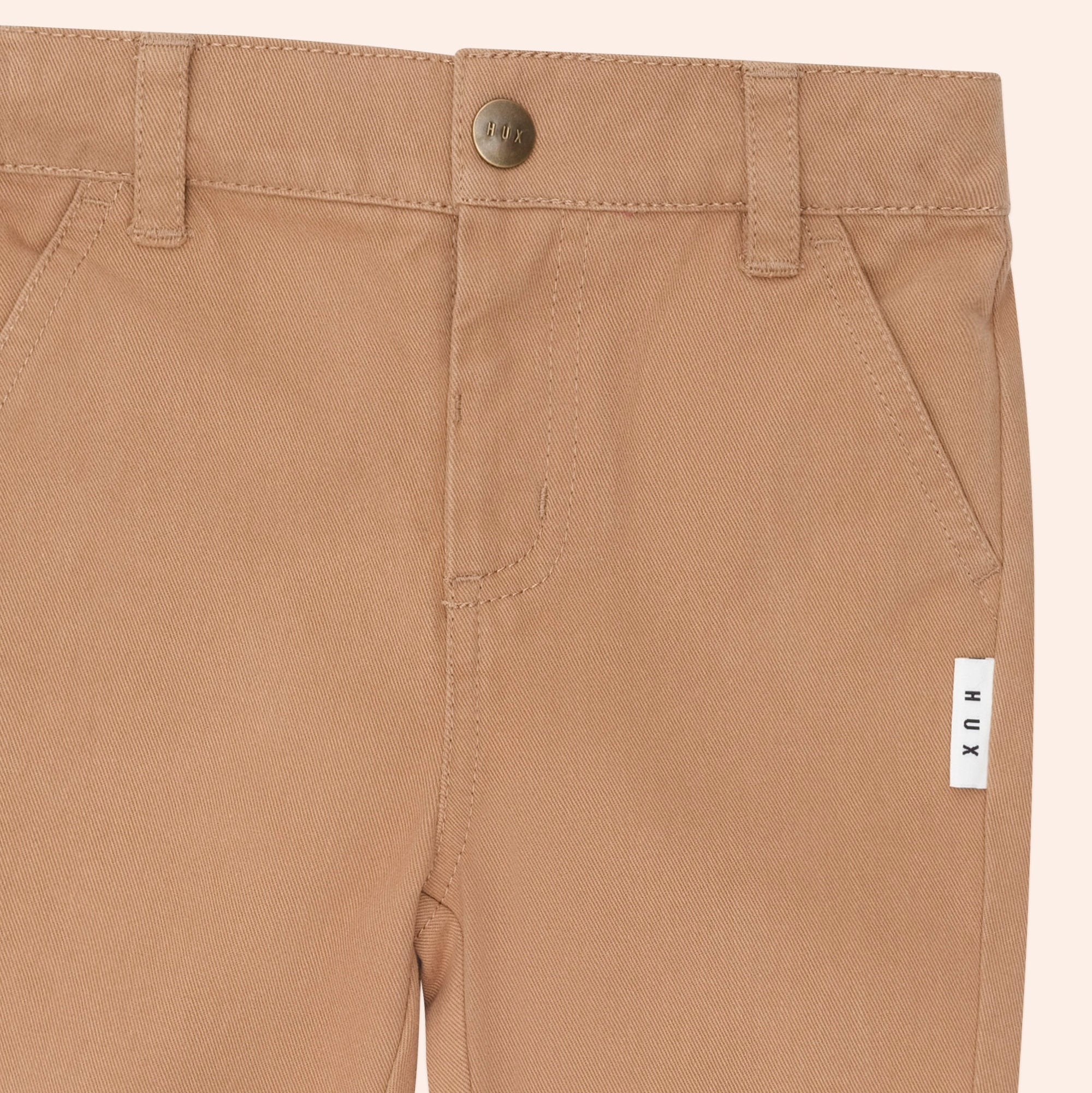 The perfect chino pant for any occasion. Dress them up or down. Made from a soft cotton twill, they featur an internal button waistband and belt loops for adjustable waist. Zipper fly on sizes 4 and up.