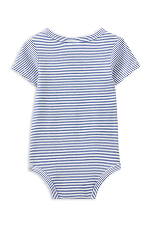 Milky Clothing Blue Rib Bubbysuit. The perfect staple for your little one’s wardrobe! This blue and white ribbed bubbysuit is versatile for any occasion. Made from the finest materials, its neat fit is ideal for layering. Designed with practicality in mind, it features a round neck with two handy centre snaps for easy dressing and quick nappy changes with three snaps at the crotch. Spend less time fussing and more time cherishing those precious moments with your baby!