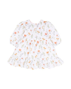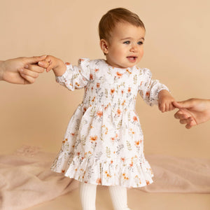 Soft, floaty and full of charm, this cotton dobby dress is made for little moments that feel a bit special. The beautifully textured fabric and gentle shirring through the bodice create an easy, comfortable shape that moves with her, while the fully lined cotton feel keeps things light and breathable. A delicate contrast neck binding adds a refined finish, and the button-back opening makes dressing simple. Designed to be loved across ages, it’s also available in baby and bigger girl sizes, perfect for sweet, matching sibling moments.