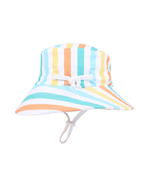 A sunshine essential for long days by the water, this striped sunhat is made for summer adventures. With its vibrant Luca stripe print and wide brim, it offers extra coverage and comfort from beach to backyard. Pair it back with the Luca stripe LS rash suit or boardshorts for a coordinated look they'll love.