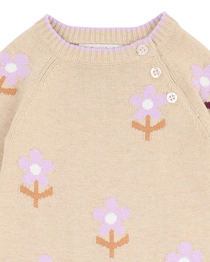 This gorgeous romper is a must have for your little one's winter wardrobe. Featuring a flower jacquard design, contrast tipping on hem bands, side neck button opening and press stud crotch opening for ease of dressing and nappy changes.
