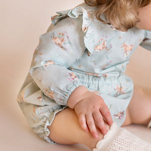 A beautifully detailed romper perfect for cosy days, outings and every little adventure in between. Soft, comfortable and easy to wear, it blends sweet design with all the practicality parents love, from delicate frills to thoughtful finishes that make changing simple.